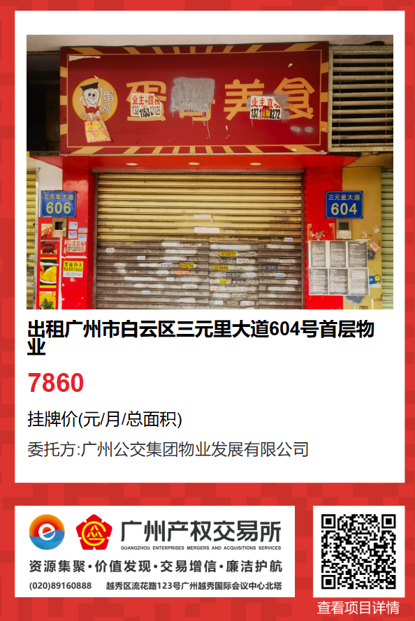 現有廣州市白云區三元里大道604號首層物業出租項目,該項目在廣州公有物業出租平臺網站自掛牌公開招租,歡迎有意向的企業法人或自然人(含個體工商戶)參加應租。現將有關事項說明如下:
