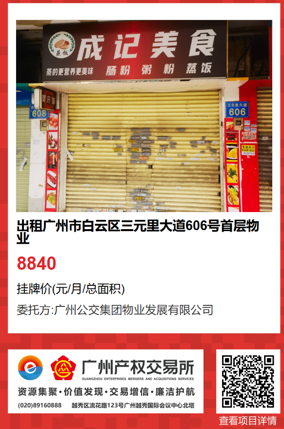 現有廣州市白云區三元里大道606號首層物業出租項目,該項目在廣州公有物業出租平臺網站自掛牌公開招租,歡迎有意向的企業法人或自然人(含個體工商戶)參加應租。現將有關事項說明如下: