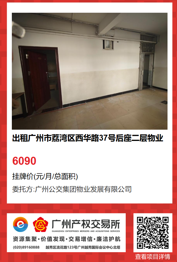 現有廣州市荔灣區西華路37號后座二層物業出租項目,該項目在廣州公有物業出租平臺網站自掛牌公開招租,歡迎有意向的企業法人或自然人(含個體工商戶)參加應租。現將有關事項說明如下: