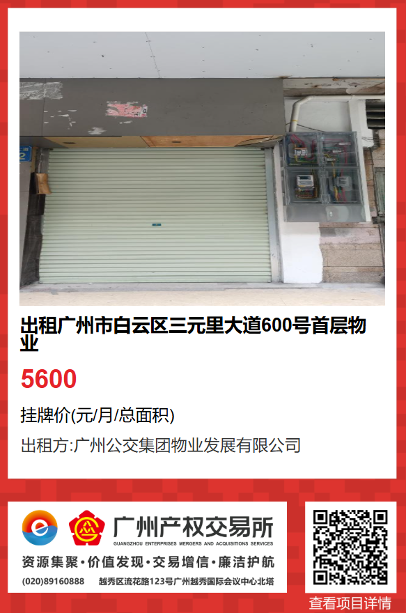 現有廣州市白云區三元里大道600號首層物業出租項目,該項目在廣州公有物業出租平臺網站自掛牌公開招租,歡迎有意向的企業法人或自然人(含個體工商戶)參加應租。現將有關事項說明如下: